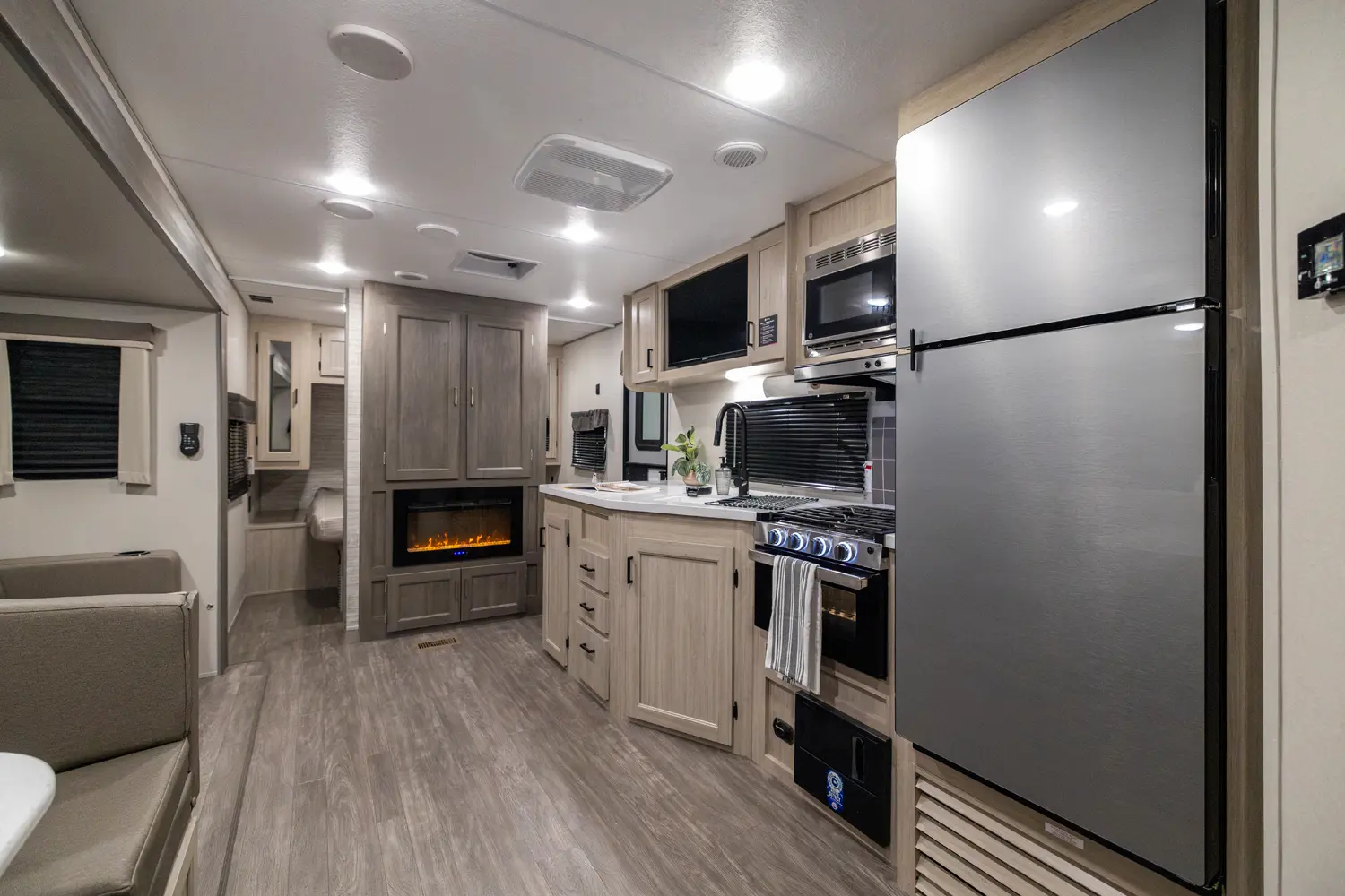 A spacious travel trailer that balances comfort with practical mobility. Designed primarily for couples who want extra room to unwind along with upgraded amenities and a relaxed, retreat-like feel. Ideal for lake stays, quiet weekends away, or setting up a comfortable home base at your favorite campground.