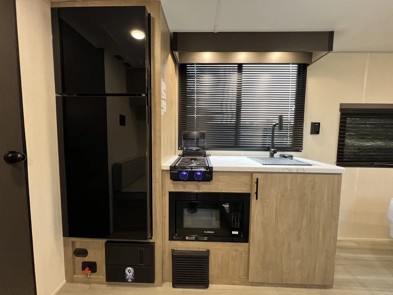 • Blackout Glass, Safety Slam, Friction Hinge Entry Door with Window and Shade Prep