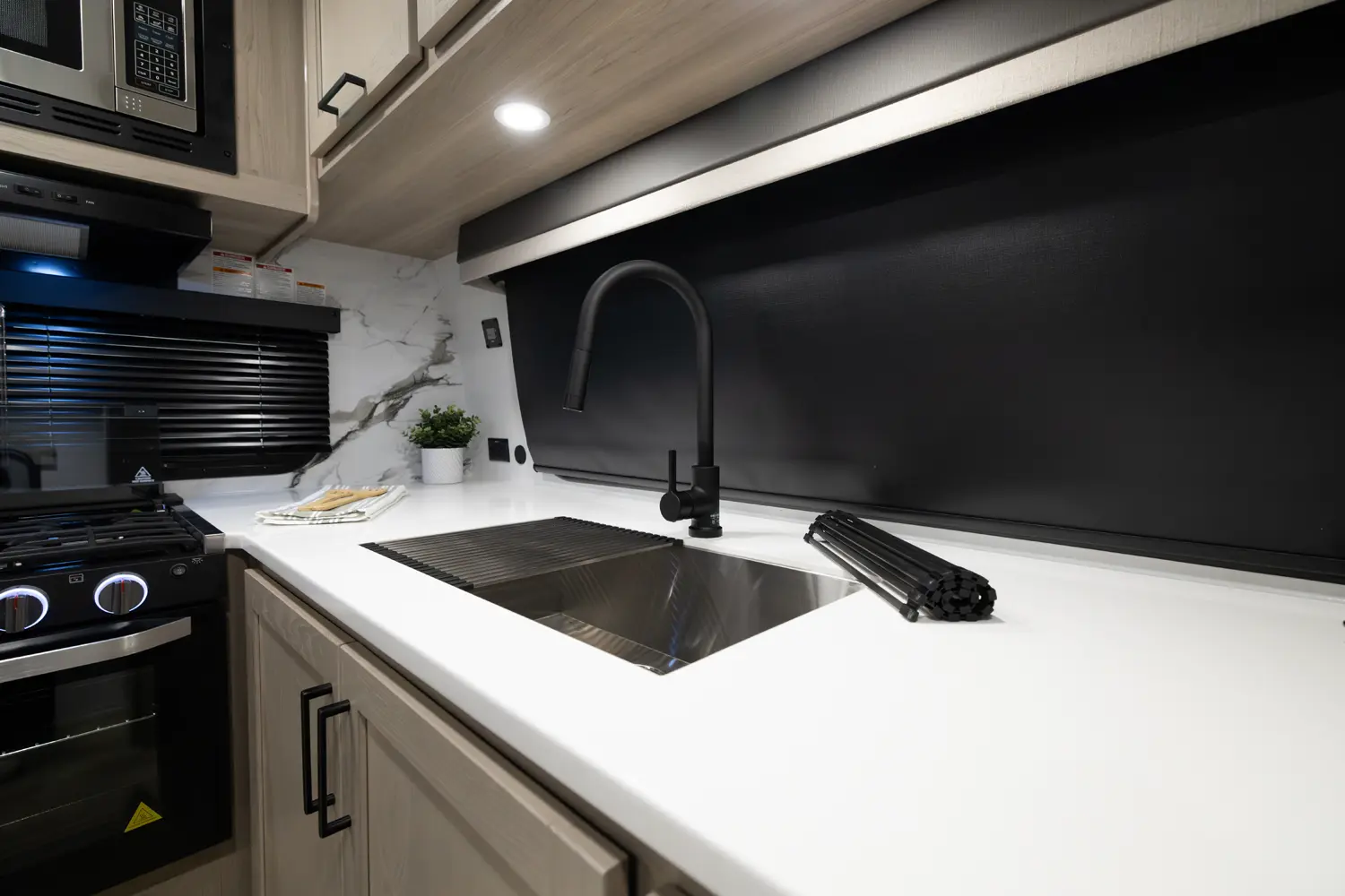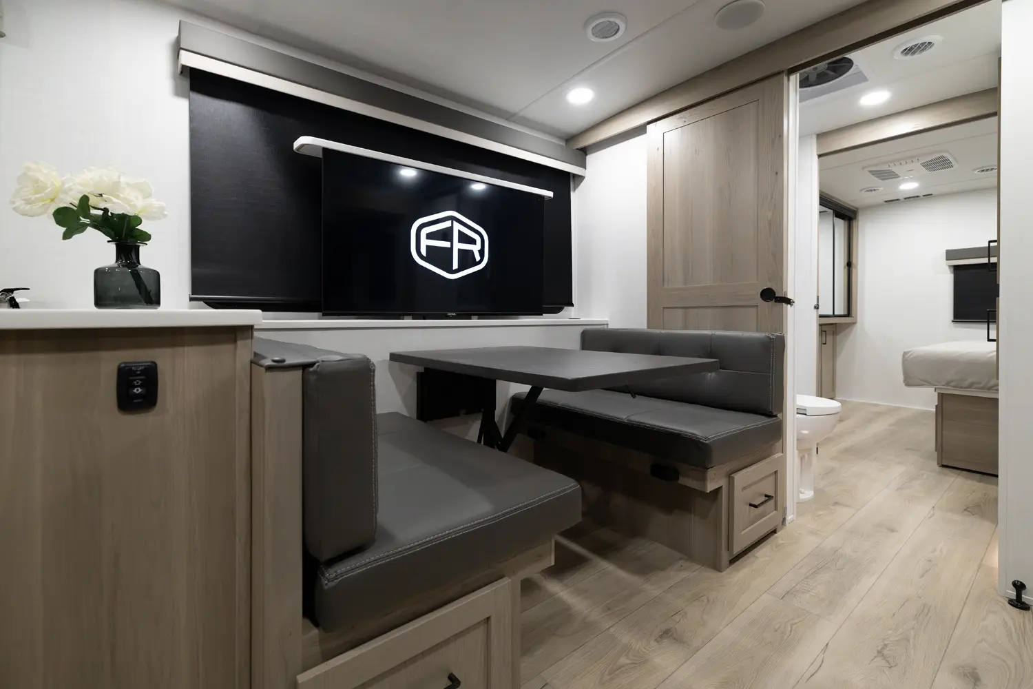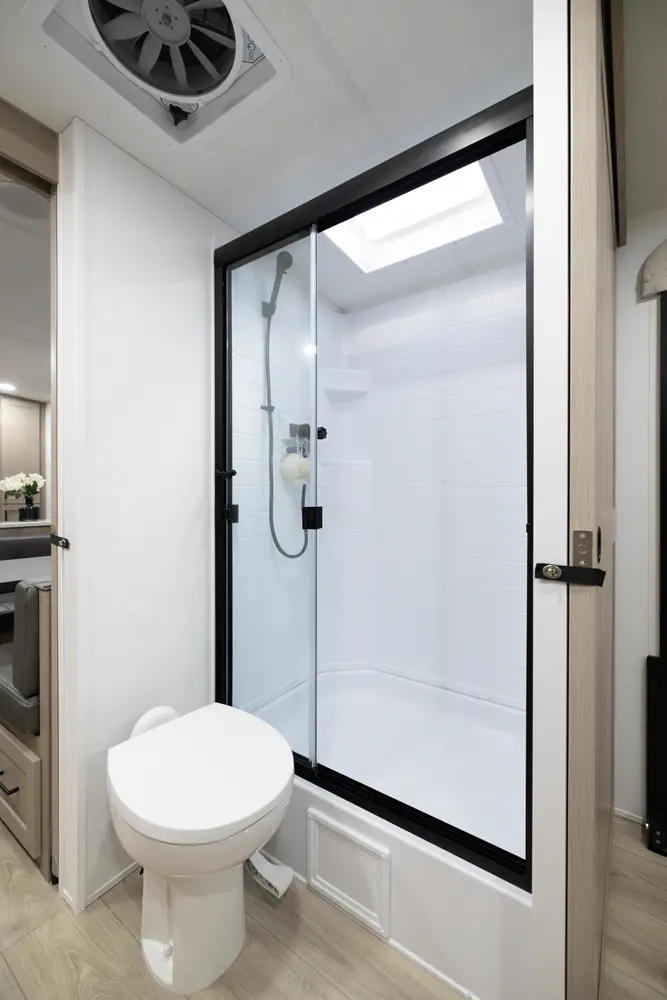 • Platinum Package: Auto Leveling, Frameless Windows, 1800W Inverter, MORryde Strut Assist Entry Step, Dual 30 LP Tanks