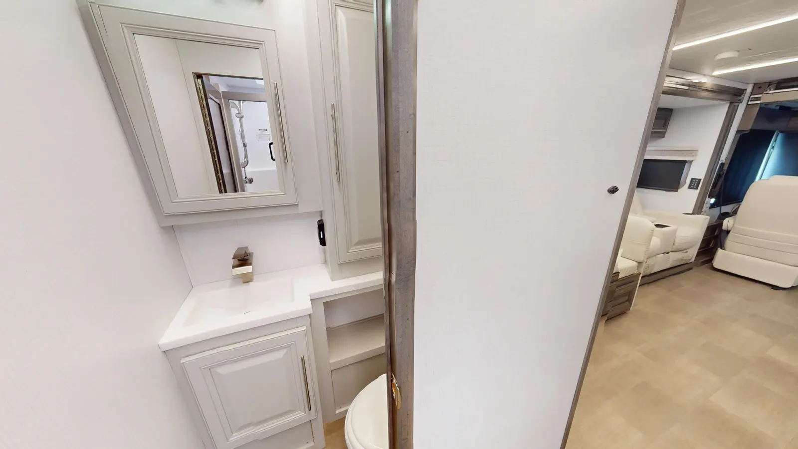 Our Georgetown 31X7 by Forest River is perfect for travelers looking for a compact and easy to drive motorhome coming in at 33ft 11in. The bedroom makes no sacrifices with a king size bed slide, washer/dryer prep and lots of wardrobe space. You also still get a full bathroom with the shower split making it convenient for your partner to shower while you get ready by the sink. There's also plenty of seating up front for guests and the dinette converts into a bed for occasional guests!
