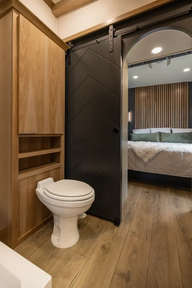 The Sequoia sets a new standard with its innovative slide-less floorplan, boosting efficiency and reducing maintenance. Inside, the galley kitchen features premium appliances, solid-surface countertops, and hardwood cabinetry. A spa-inspired bath, dual-closet bedroom, and expansive storage highlight its modern and functional design, delivering luxury and innovation in every detail.