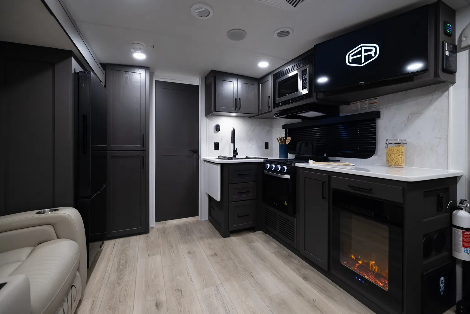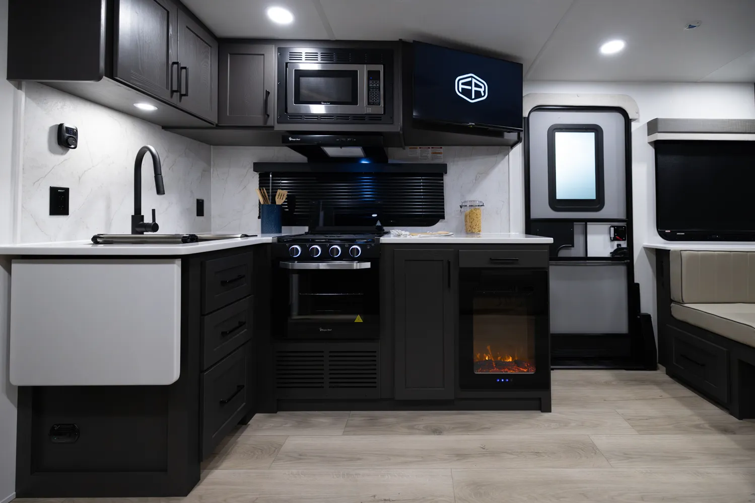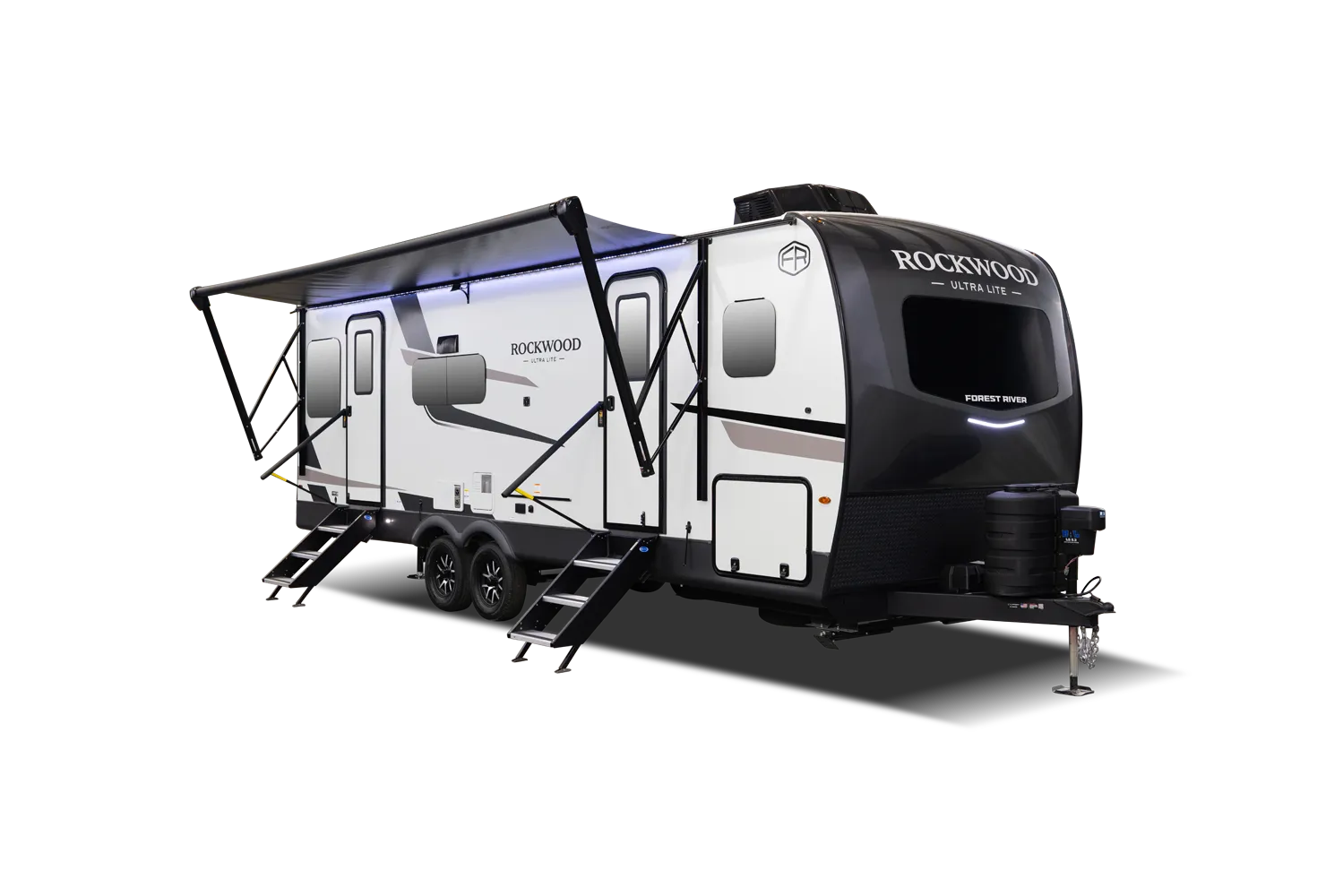 • Platinum Package: Auto Leveling, Frameless Windows, 1800W Inverter, MORryde Strut Assist Entry Step, Dual 30 LP Tanks