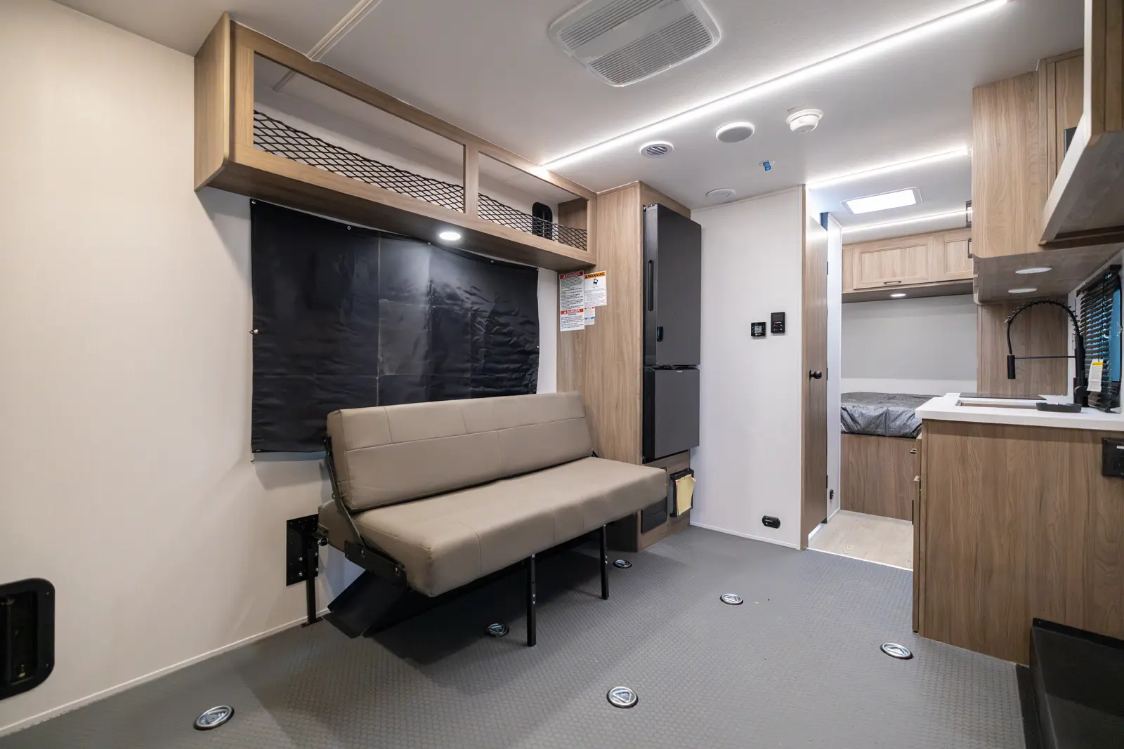 The Work & Play 18LT balances rugged cargo space and compact agility. With its reinforced ramp, built-in tie-downs, and heavy-duty construction, it hauls bikes or ATVs to trailheads. After a day of adventure the interior becomes a cozy retreat, giving you a dependable base for weekend getaways or action-packed road trips.